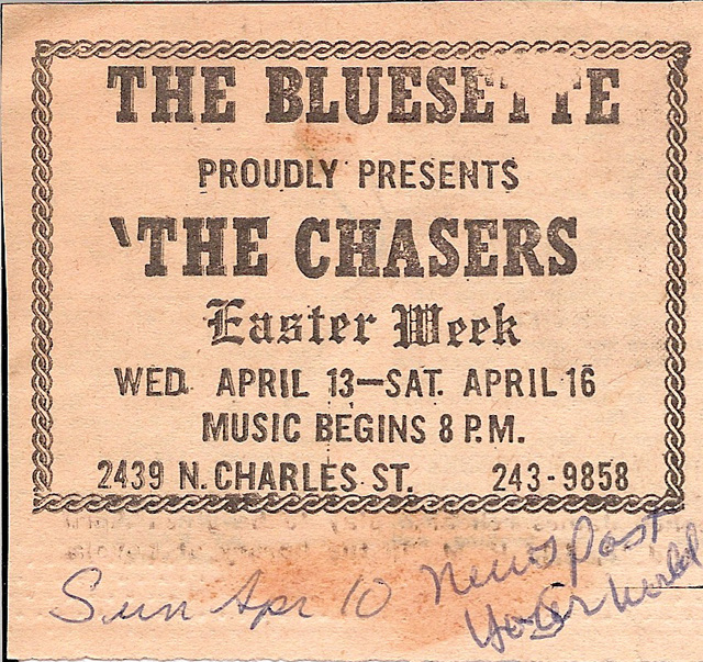 The Chasers / JD & the ChasersThese guys were one of the early house bands at the Bluesette. JD & the Chasers-Jan. 16, 1966 Larry Collins (early 1966) JD & the Chasers, 1966