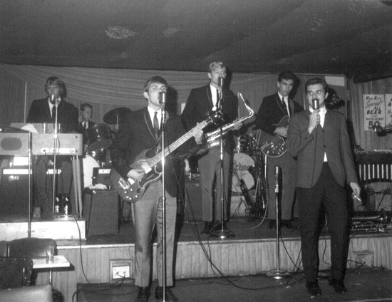 Various others passed through during the early years but I can’t remember them all. As the band evolved in the years that followed, as recalled by Sam Towers ... I joined the band first as the bass player. When I joined it was Henry Orpin on guitar, Luppold on keys, Tommy on tenor, Danny on trumpet and singing, and Wally on Drums. Treffinger replaced Luppold and that's how we started at Hollywood Park. Shortly after, Wally quit to go to college and was replaced by Buddy Novac. A little later Henry quit, and after that Mike (Jones) Hodgeman replaced Danny Shaw on vocals. (Ed.Note: Mike was singing with the Majestics and the bands essentially swapped singers, with Danny going to the Majestics.) The Elegants, The Elegants, The Elegants, The Elegants, |