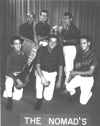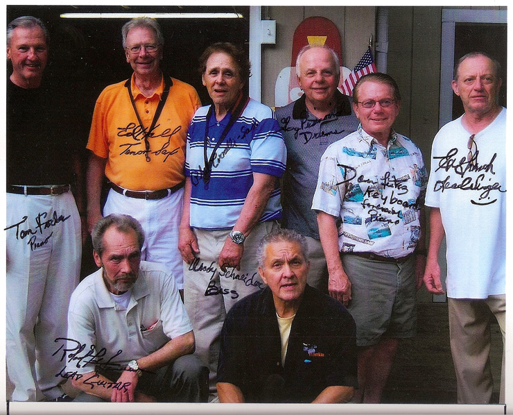 From left to right: Earl French-lead singer, John Zacha-tenor, Elwood (Woody) Schneider-bass, Gary Rusinovich-drums, Roland Gannon-guitar, Ed Hall-tenor, Danny Fitez-piano.