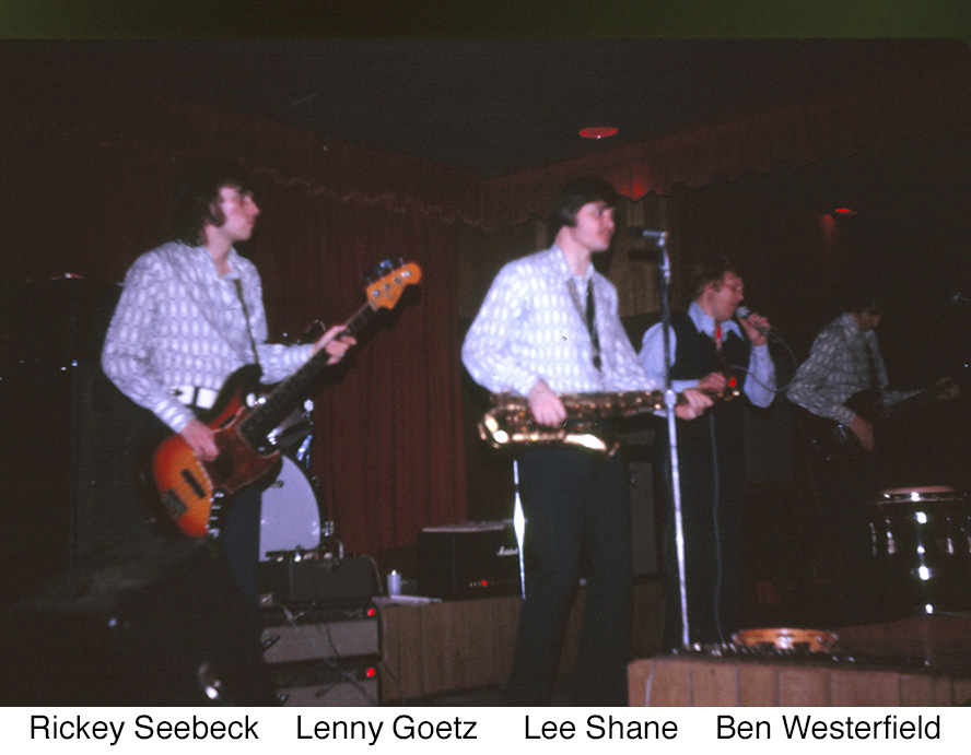 Clockwise from Bottom: Lee Shane - lead vocals, Ricky - bass, Lenny - sax, Ben Westerfield - guitar, Jere Stermer - drums, Ray Gagne - keyboards (later - bass)