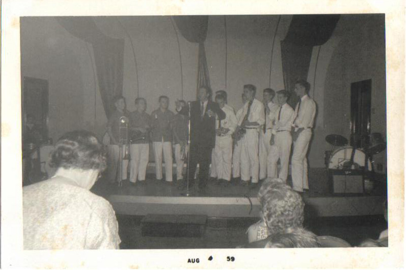 The Dixie BallroomThe Dixie Ballroom was a dance hall located within Gwynn Oak Park, a privately owned amusement park about ¼ mile off of Liberty Heights Avenue at the corner of Gwynn Oak and Gwyndale Avenues in Woodlawn. This photo is the only one I've been able to track down showing the inside of the Dixie Ballroom. From August, 1959, it shows the Poker Chips and the Admirals on stage together, with an unidentified MC. This was a talent competition in which both bands competed. it's amazing the difference a couple years can make at that age; the 12-13 year old Poker Chips look very young next to the slightly older Admirals. Gwynn Oak was the longest operating park in the Baltimore area, opening in 1893 and surviving (if not always thriving) until a perfect storm of bad publicity, bad finances and Hurricane Agnes led to its eventual closing in 1973. In 1909, The Sun paper hailed Gwynn Oak as “the great picnic and Sunday school excursion ground of the city,” and indeed many Baltimoreans remember school trips to Gwynn Oak to celebrate First Holy Communions or spring graduations. The park offered many rides and amusements, tennis courts, a baseball diamond, ice skating in the winter and pleasure boating, but to a certain generation Gwynn Oak will always be associated with the Dixie Ballroom. Folks dressed in coats and ties danced to the music of Artie Shaw, Glenn Miller, or local bandleader Bob Craig. On the weekends local AM radio station, WFBR, did live broadcasts from the ballroom. When rock’n'roll replaced big band music in popularity the Dixie Ballroom eventually closed. This writer knows it was open into the late 1950s because I played there in a "talent contest" that included prominent local entertainers of the time like the Picarelli Brothers and Beverly Ann Smith. We, the Poker Chips, made it to the finals playing dixieland music where we were finally knocked out by one of those new-fangled rock and roll bands, The Galaxies. Despite its longevity, changing times had serious consequences for Gwynn Oak. In 1963, the segregated park resisted integration and received national press (including an article in Time Magazine) after nearly 400 whites and blacks, among them Protestant, Catholic and Jewish religious leaders, marched on Gwynn Oak on July 4 to protest the “whites only” policy—a scene rendered (with much poetic license) in John Waters’ film “Hairspray.” Nearly 300 protesters were arrested and taken by school buses to the Woodlawn Police Station. Gwynn Oak closed in 1973, ending the history of the longest operating amusement park in Baltimore. Photos of the Dixie Ballroom have been hard to come by, but we did find this nostalgic video portrait of Gwynn Oak.