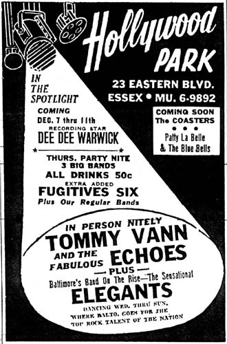 Hollywood ParkHollywood Park was a great, and perhaps unlikely, place for music. If you were designing the next Carnegie Hall you would not design it like the Park, but if you were designing a place where the sound was totally present and the ambiance totally intimate for sharing a musical moment with great talent, Hollywood Park was right on. Located at 23 Eastern Boulevard in Essex, Hollywood Park was distinctive for it's unadorned clapboard looks and unpaved parking lot. There was a 'package goods' or off-sale liquor store—just a narrow counter, really—attached to the front where you might see one of the Temptations picking up a 6-pack to take back to the hotel after their last show. We have been able to find very little in the way of photos and documentation on Hollywood Park. If you have anything to contribute, please contact us. |