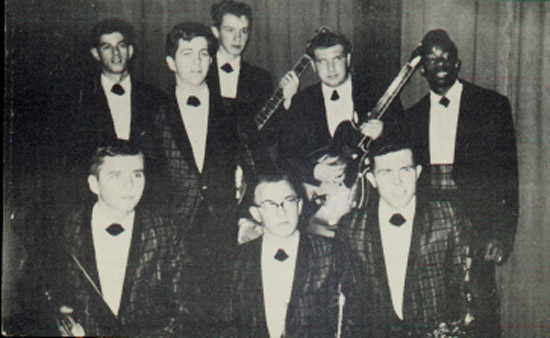 (L to R) Top row: Marty Fisher, Mike Foreman, Dick (Bird) Lynas, Paul Finerty, James (Baby) Brown. Bottom row: John Keys, Daryl Martel (deceased), Charlie Loane
