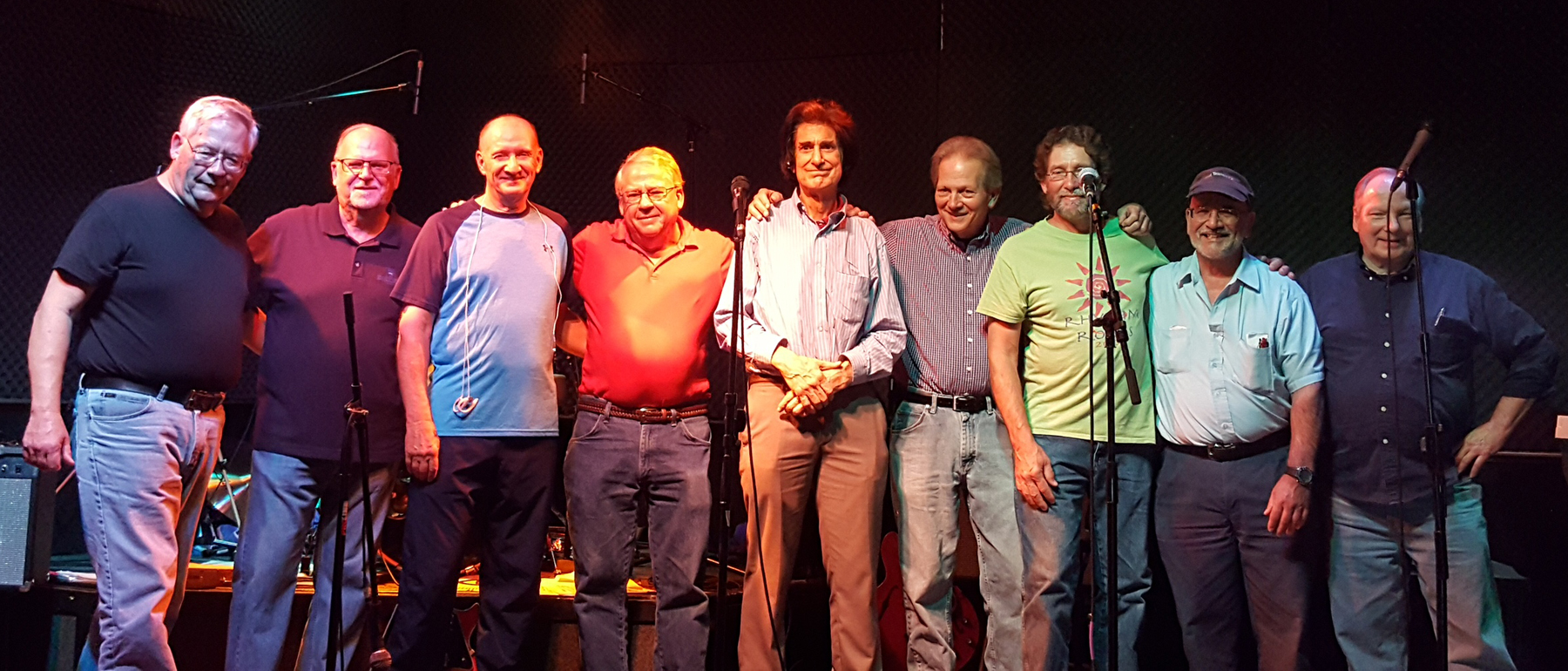 2016 First Playing Reunion, L. to R.: Bernie Bigham, Gene Callahan, Tim Reid, Mike Hoyt, Paul Gervas, Bill Colbert, Mike Pugh, Frank Fertitta, Tim Will
